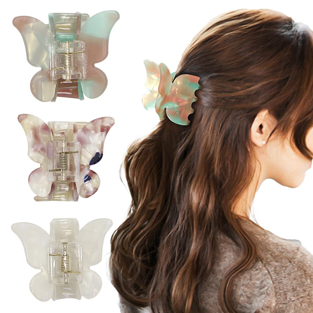 3 Pieces Acrylic Butterfly Hair Claws Tortoise Shell H